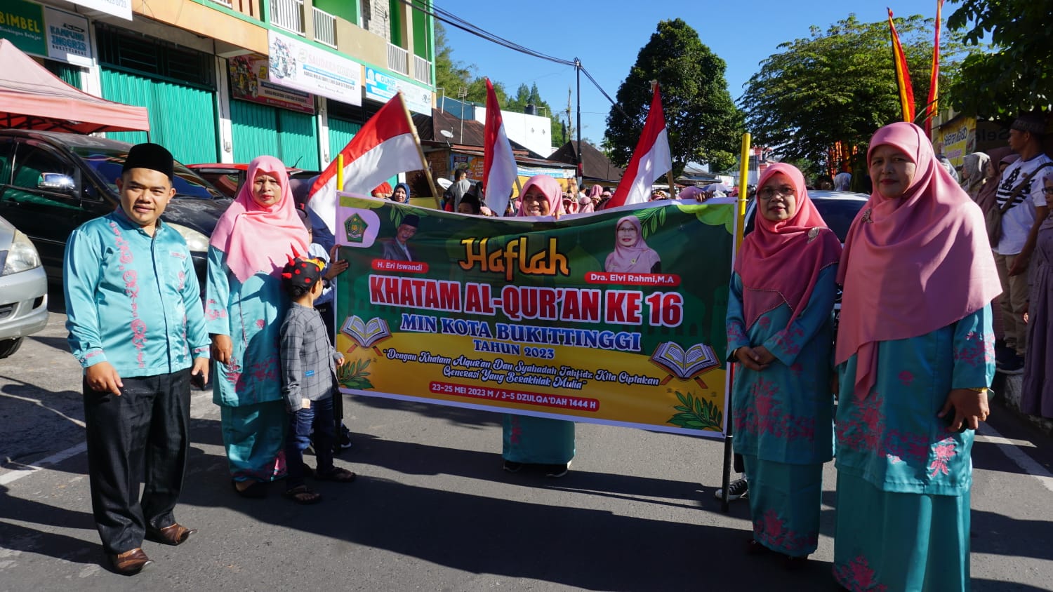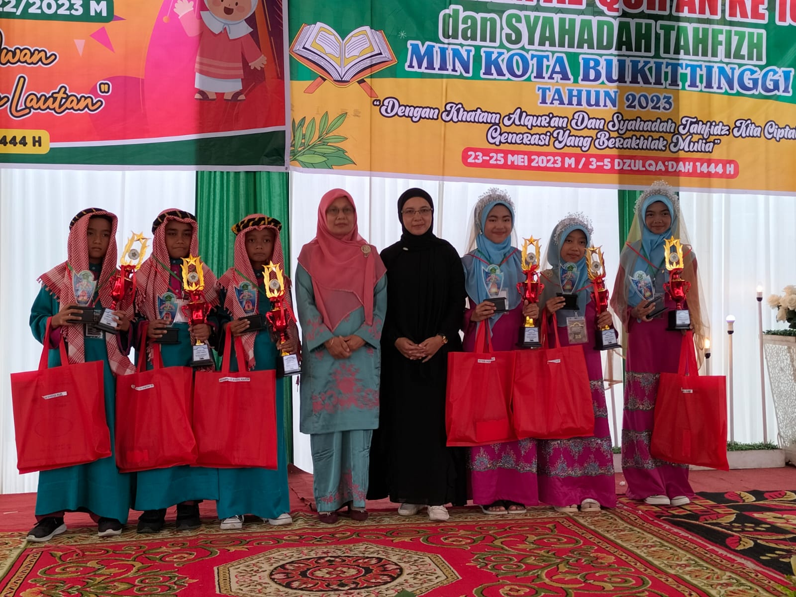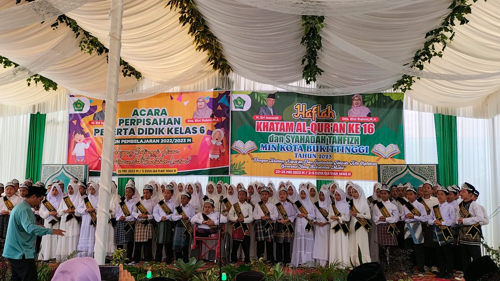 Kakan Kemenag Kota Bukittinggi melalui Kasubag Tata Usaha, Hj Tri Andriani Djusair membuka sekaligus memberikan sambuatan kegiatan khatam Al-Qur’an dan syahadah tahfidz di MIN Kota Bukittinggi.
